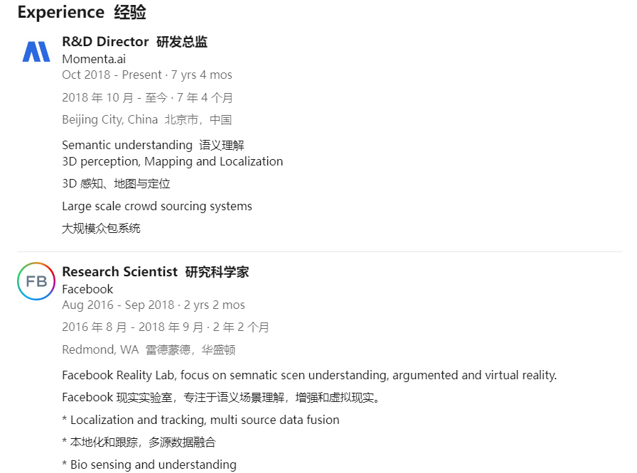 很快,穆北鹏入职了如今热度正盛的智驾公司Momenta,担任研发总监一职,主导了高精地图建图技术,后装ADAS技术等方向的研发和量产。